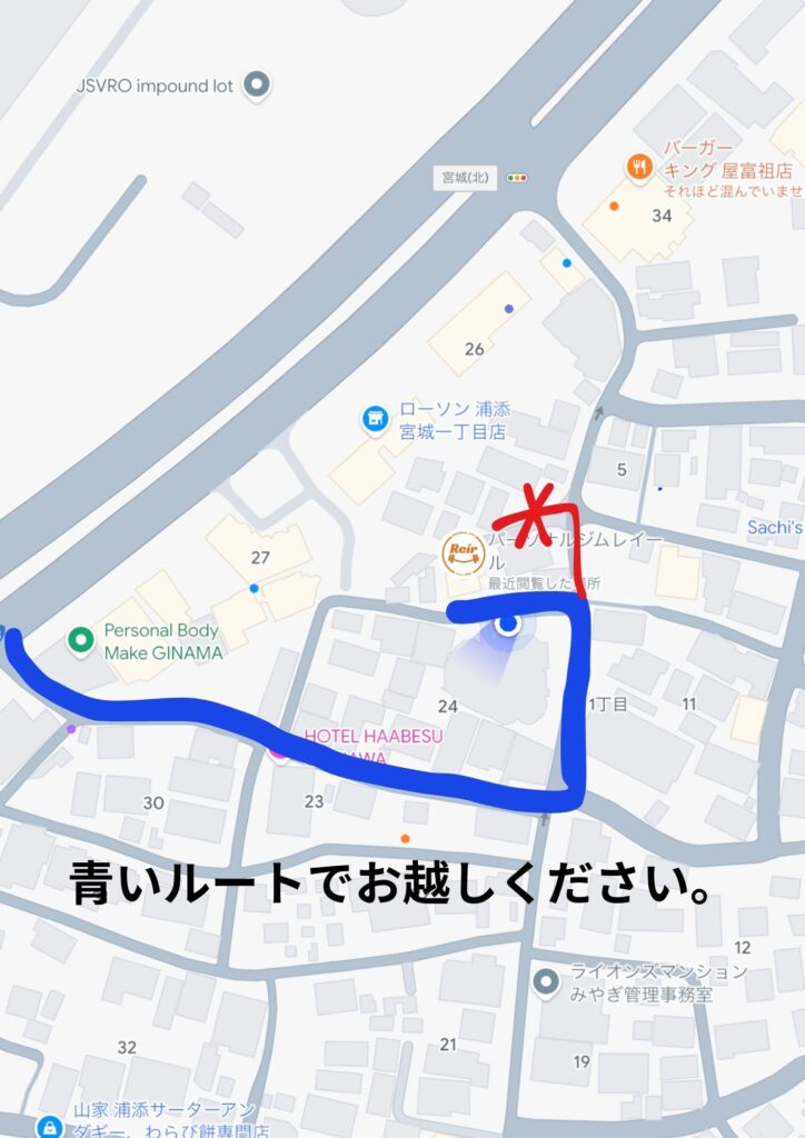 お手数ですが、ご来店の際は下記画像のルートをご参考にお越しください。